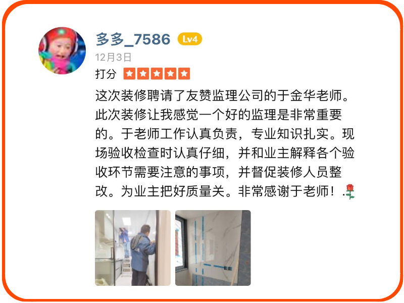 专业监理老师:友赞的老师都有多年和装修经验,他是您在装修过程中的好参谋、好顾问,保护您的利益,请监理是您装修中最明智的选择。
