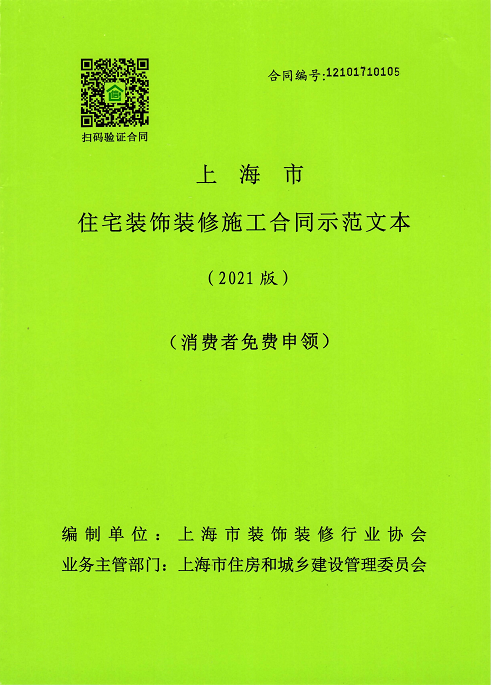 个人消费者在签订施工合同前,可以免费申领《上海市住宅装饰装修施工合同示范文本》2021消费者免费版!消费者免费版由上海市装饰装修行业协会编制、印制,为消费者提供规范的合同文本,仅供消费者个人使用。